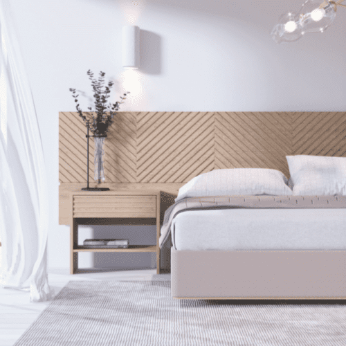Cama em contraplacado marítimo folheado a madeira/lacado.