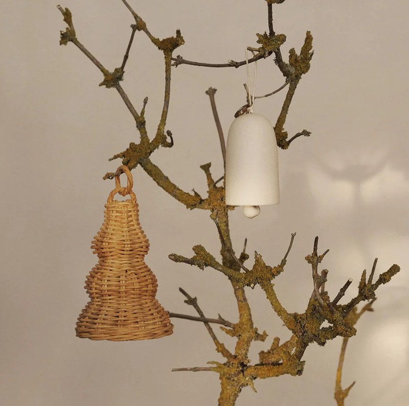 Suspenso por um cordão de algodão encerado, o sino tem um toque distintamente natalino graças a uma pequena pérola de cerâmica irregular e é uma adição simples, mas festiva, à sua árvore de Natal.
