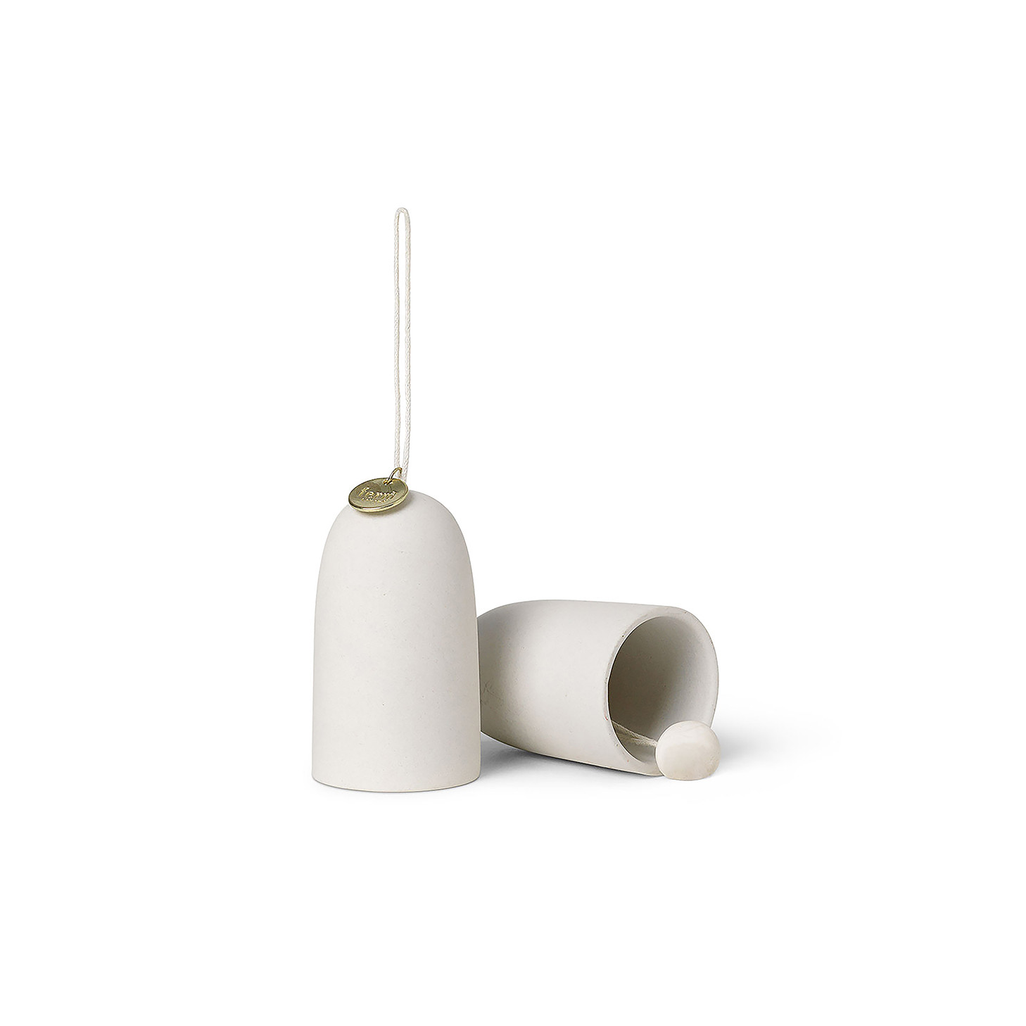 Este charmoso conjunto de sinos é feito em grés fosco não vidrado e tem uma expressão delicada e minimalista.